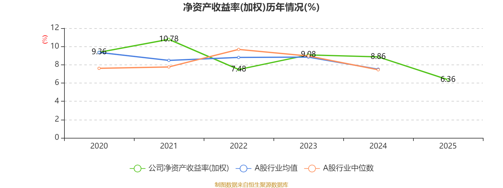 数据显示,2025年公司平均净资产收益率为6.36%,较上年同期下降2.5个百分点。