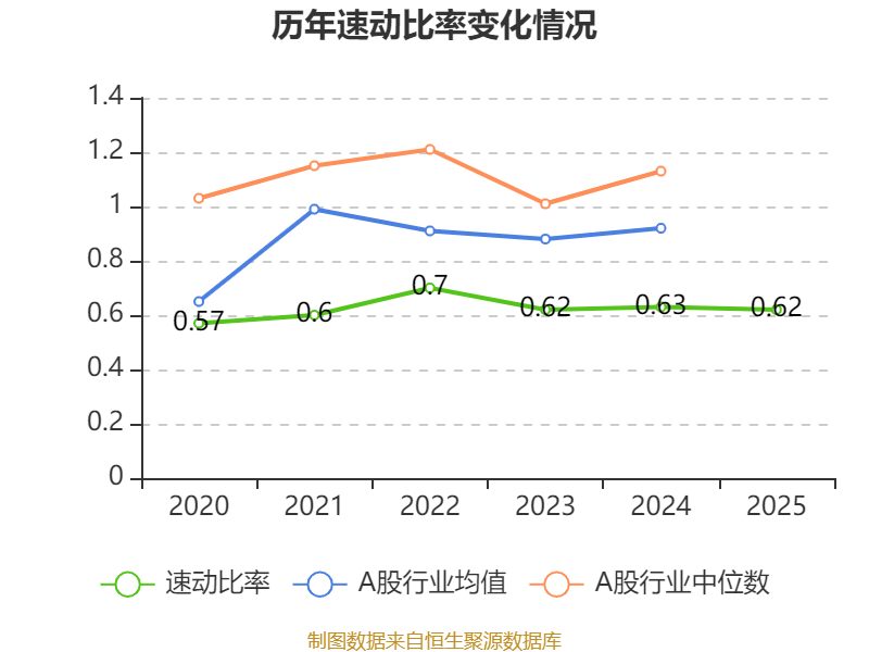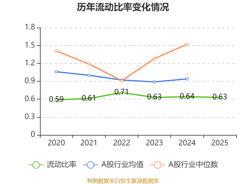 2025年,公司流动比率为0.63,速动比率为0.62。