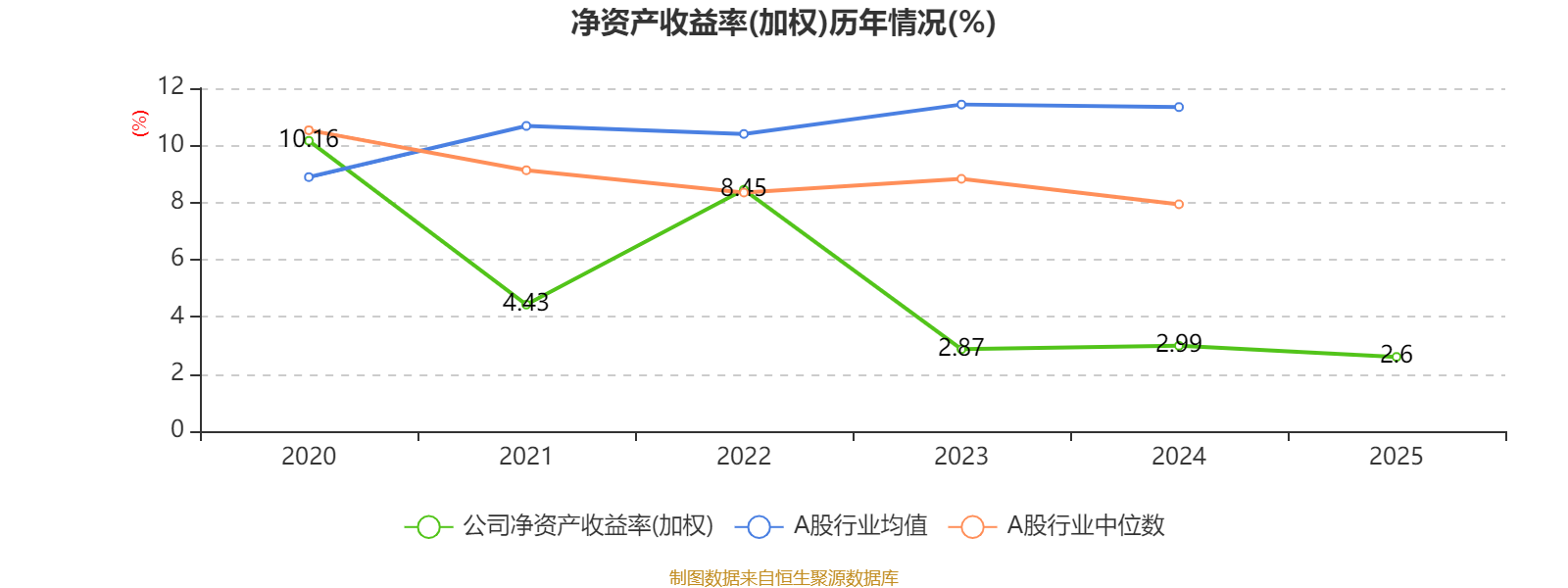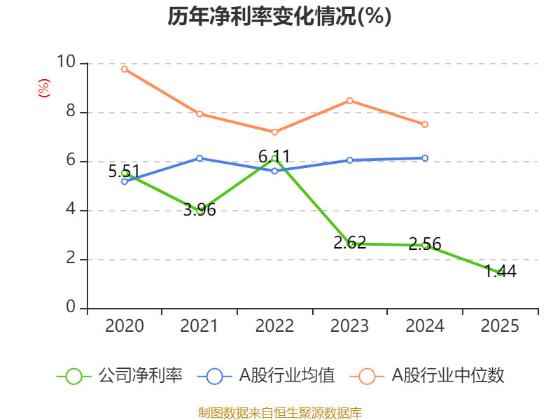 数据显示,2025年公司平均净资产收益率为2.6%,较上年同期下降0.39个百分点。