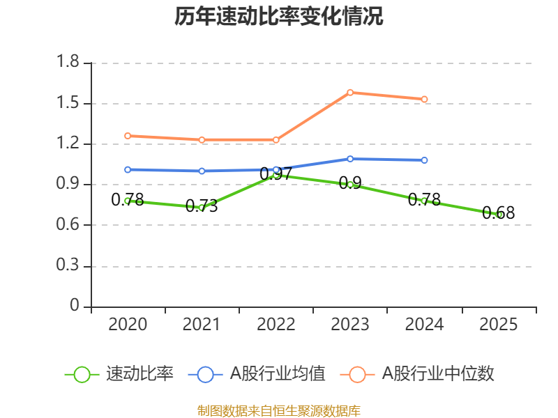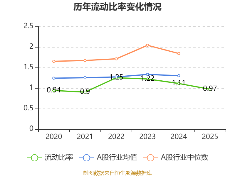 2025年,公司流动比率为0.97,速动比率为0.68。