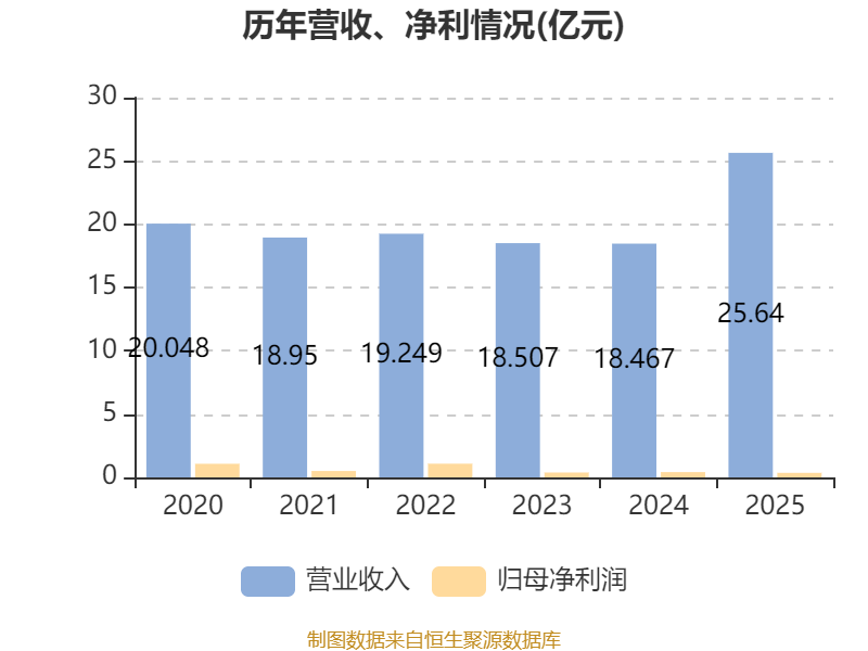 中证智能财讯华众车载(06830)3月31日披露2025年度报告。报告期内,公司实现营业收入25.64亿元,同比增长38.84%;归母净利润3597.7万元,同比下降14.15%;据报告显示,华众车载基本每股收益为0.0203元,平均净资产收益率为2.6%。