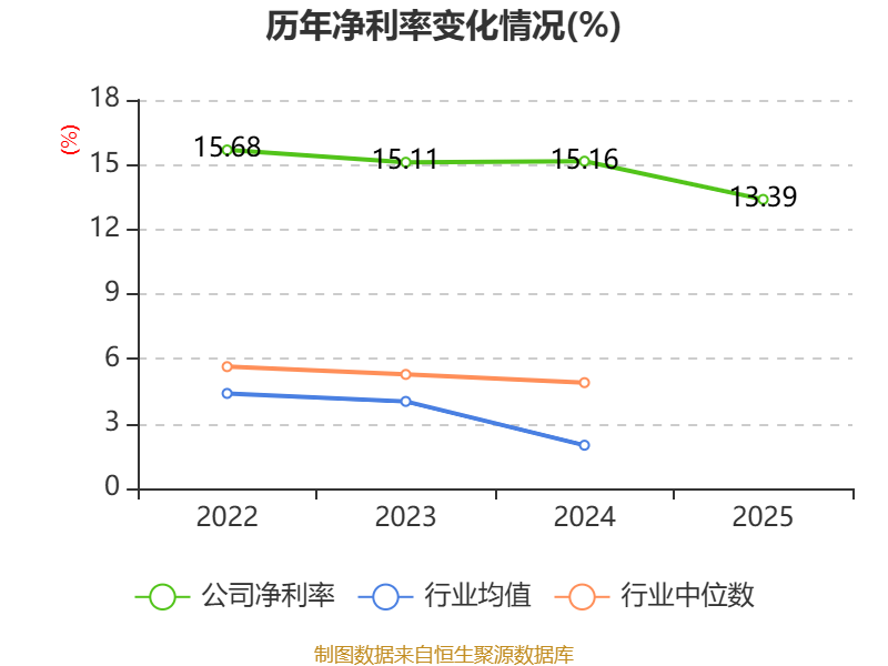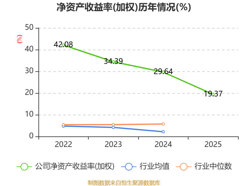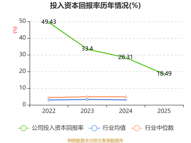 数据显示,2025年公司加权平均净资产收益率为19.37%,较上年同期下降10.27个百分点。公司2025年投入资本回报率为18.49%,较上年同期下降9.82个百分点。