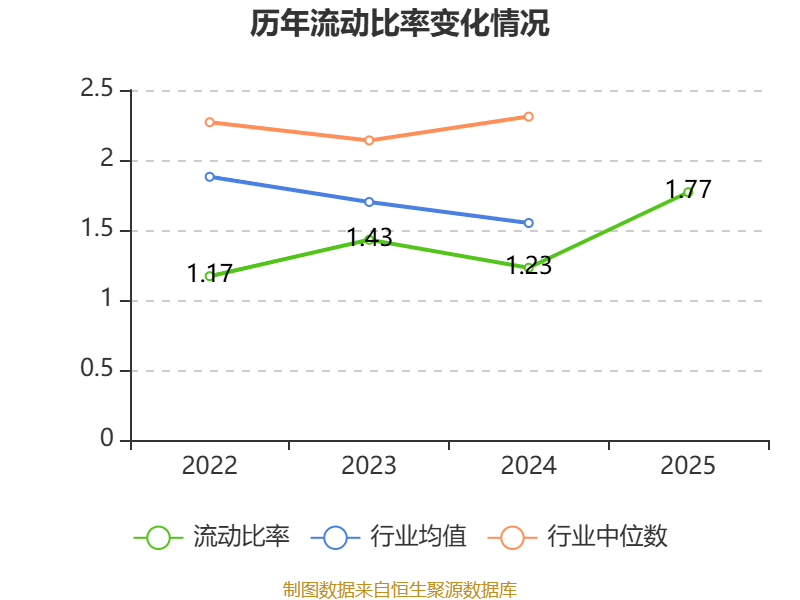 2025年,公司流动比率为1.77,速动比率为1.41。