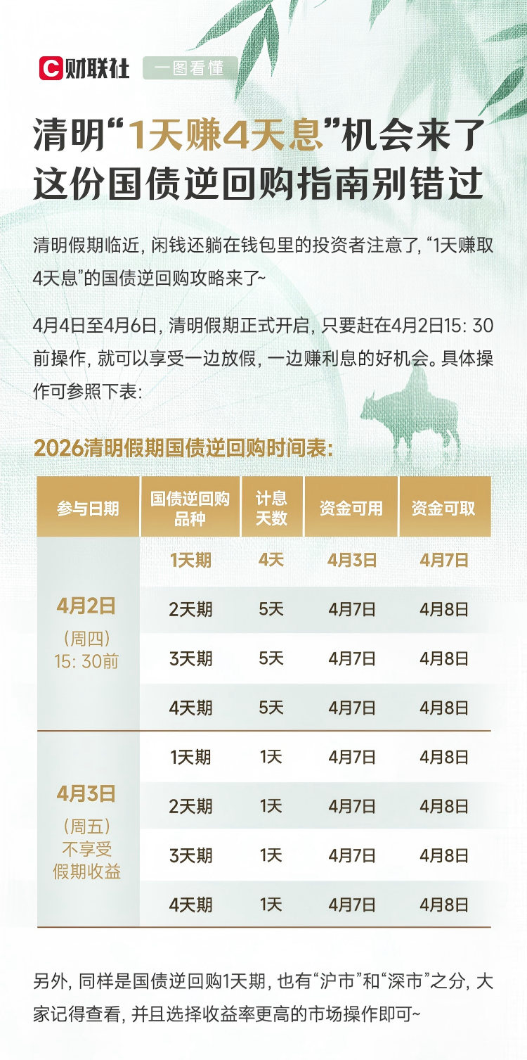 一图看懂 | 清明“1天赚4天息”机会来了,这份国债逆回购指南别错过