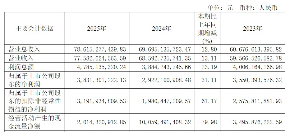 年报显示,2025年,东方电气实现营业收入775.82亿元,同比增长13.11%;实现归母净利润38.31亿元,同比增长31.11%;实现扣非净利润31.91亿元,同比增长61.17%;实现基本每股收益1.15元。分红方面,公司拟以当前总股本为基数,向全体股东每10股派发现金红利5.3元(含税)。