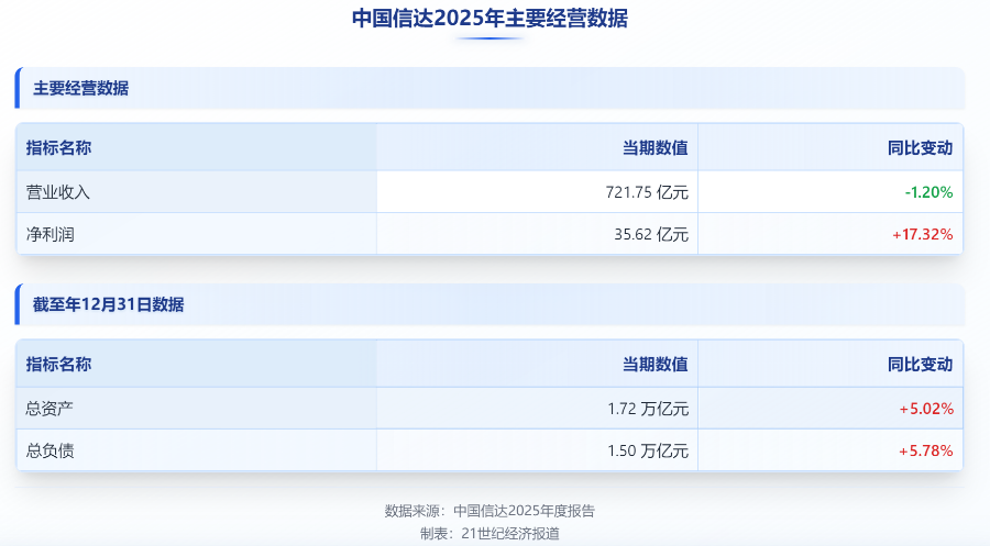 归母净利润同比大幅增长17.32%,资产总额稳步增至1.72万亿元,不良资产主业投放与现金回收双双创下近三年最高水平……3月31日晚,中国信达发布了2025年度业绩报告,经营业绩稳中向好,资产规模稳中有增,利润水平企稳回升,展现出了在复杂环境下逆周期调节的韧性与专业能力。