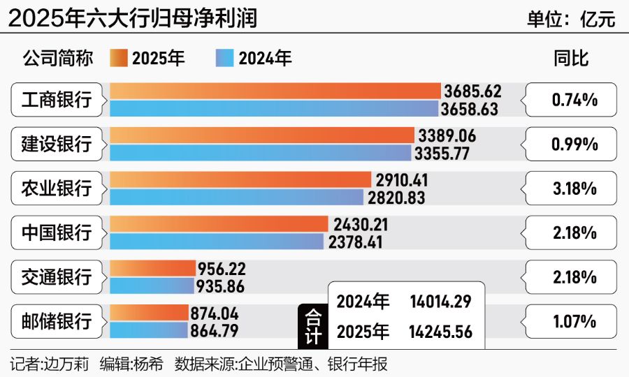 随着2025年年报悉数出炉,国有六大行全年经营答卷已全部揭晓。