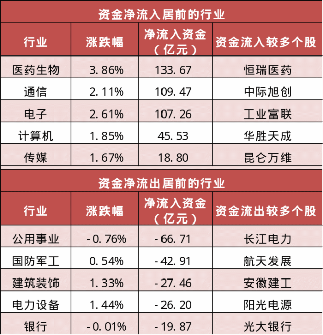 【1日资金路线图】两市主力资金净流入超70亿元 医药生物等行业实现净流入