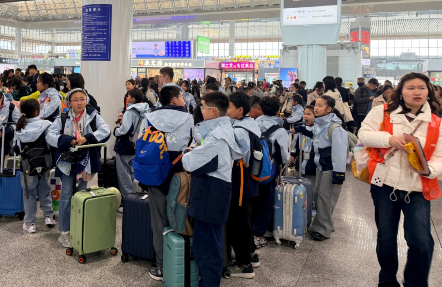 江苏春假首日,南京南站“含娃量”极高