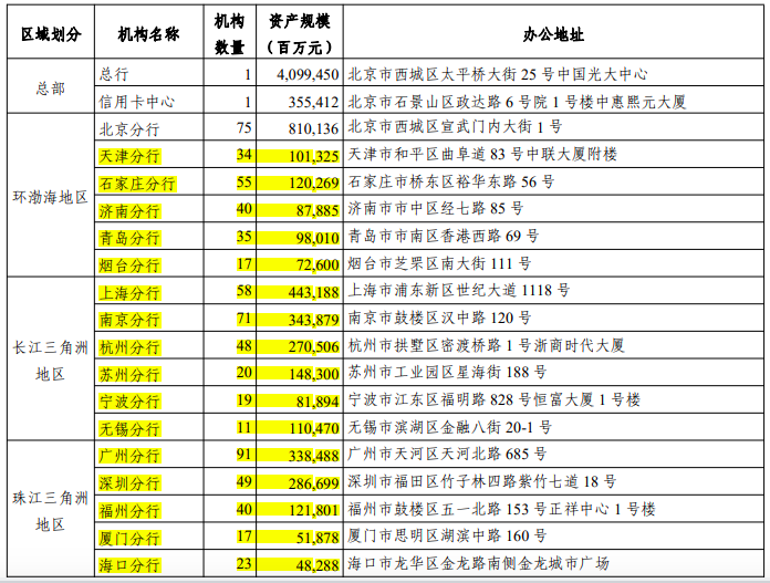 珠江三角洲地区的广州分行期末资产规模在上交所版本中为3384.88亿元,在港交所版本中则为1333.18亿元,前者是后者的2.5倍;深圳分行期末资产规模上交所版本为2866.99亿元,在港交所版本中则为518.78亿元,前者是后者的5.5倍。