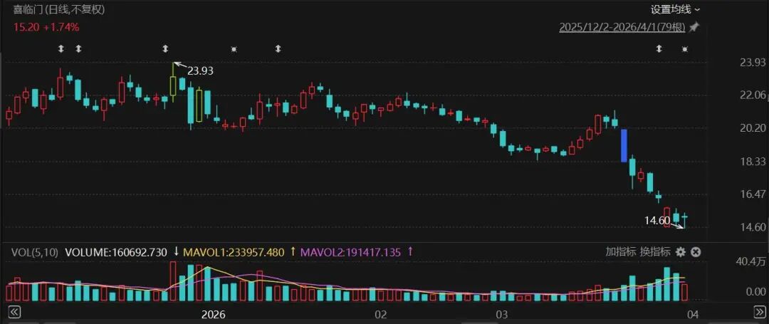 4月1日,喜临门收于15.2元/股,总市值约56亿元。