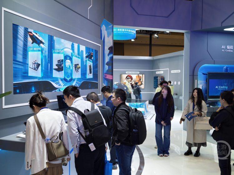 展会现场满满的“AI元素”成为现场一大看点。工作人员介绍,京东方自研的蓝鲸显示大模型已深度赋能其制造、产品与运营三大业务板块,正在全力推动显示产业向智能化、场景化转型。
