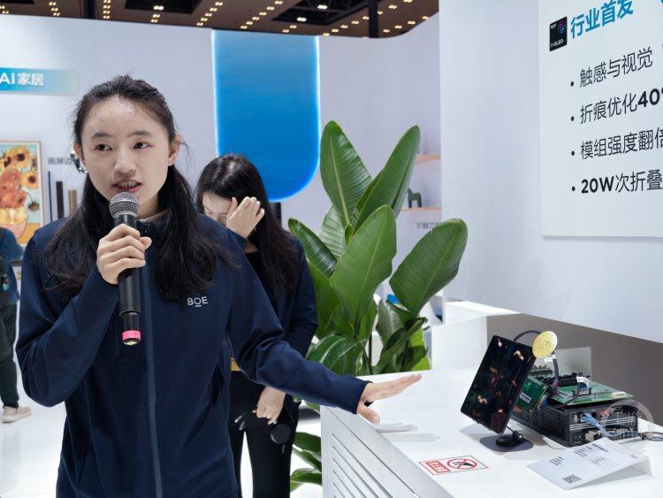 “真无痕”折叠显示技术展示引来观众驻足了解