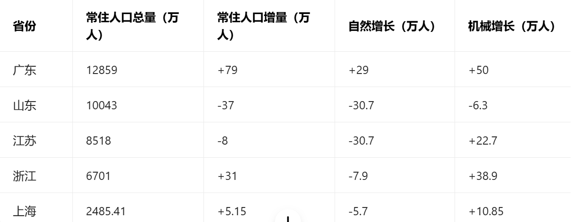 而广东、浙江则需进一步发挥人口优势,推动人口红利向人才红利转化,在人口变局中抢占发展先机。