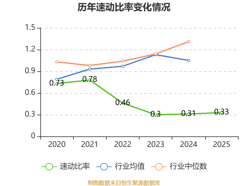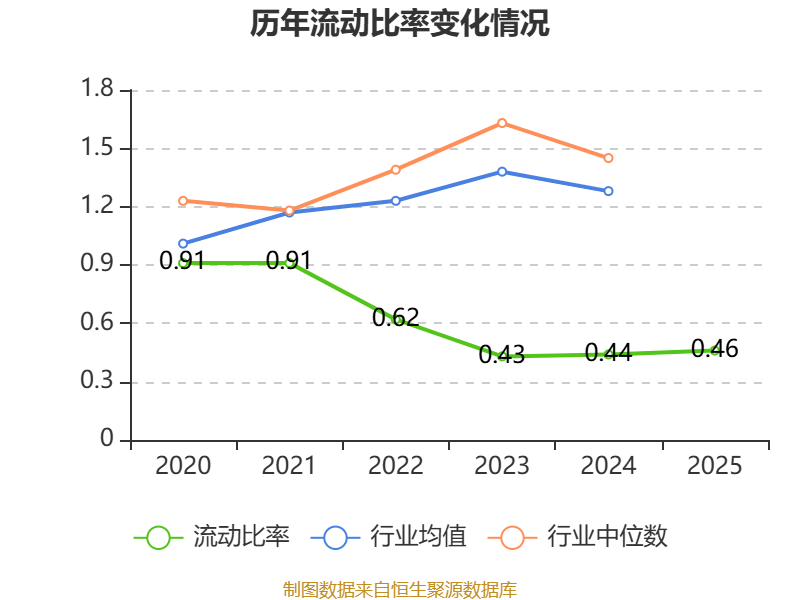 2025年,公司流动比率为0.46,速动比率为0.33。