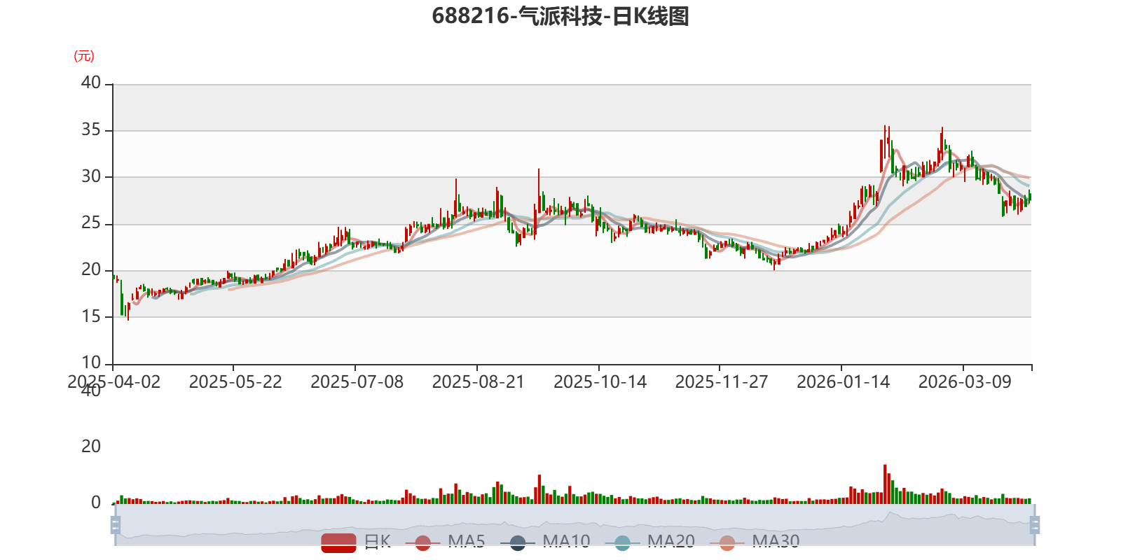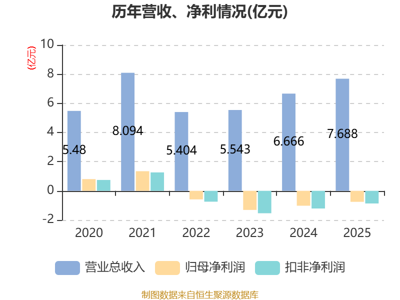 中证智能财讯气派科技(688216)4月2日披露2025年年度报告。2025年,公司实现营业总收入7.69亿元,同比增长15.34%;归母净利润亏损7538.4万元,上年同期亏损1.02亿元;扣非净利润亏损8657.72万元,上年同期亏损1.21亿元;经营活动产生的现金流量净额为6354.47万元,上年同期为-2954.93万元;报告期内,气派科技基本每股收益为-0.71元,加权平均净资产收益率为-12.20%。