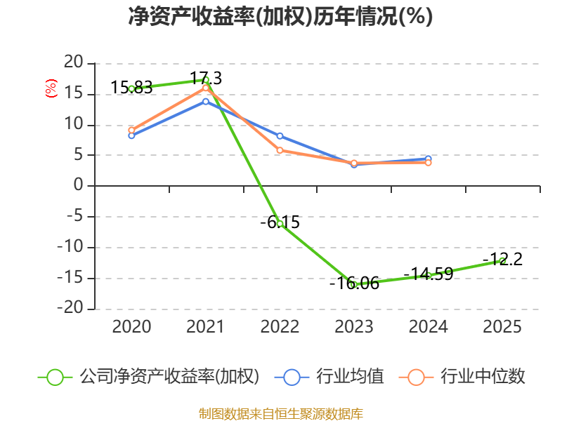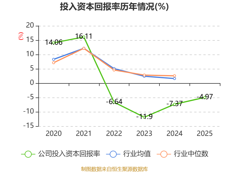 数据显示,2025年公司加权平均净资产收益率为-12.2%,较上年同期上升2.39个百分点。公司2025年投入资本回报率为-4.97%,较上年同期上升2.4个百分点。