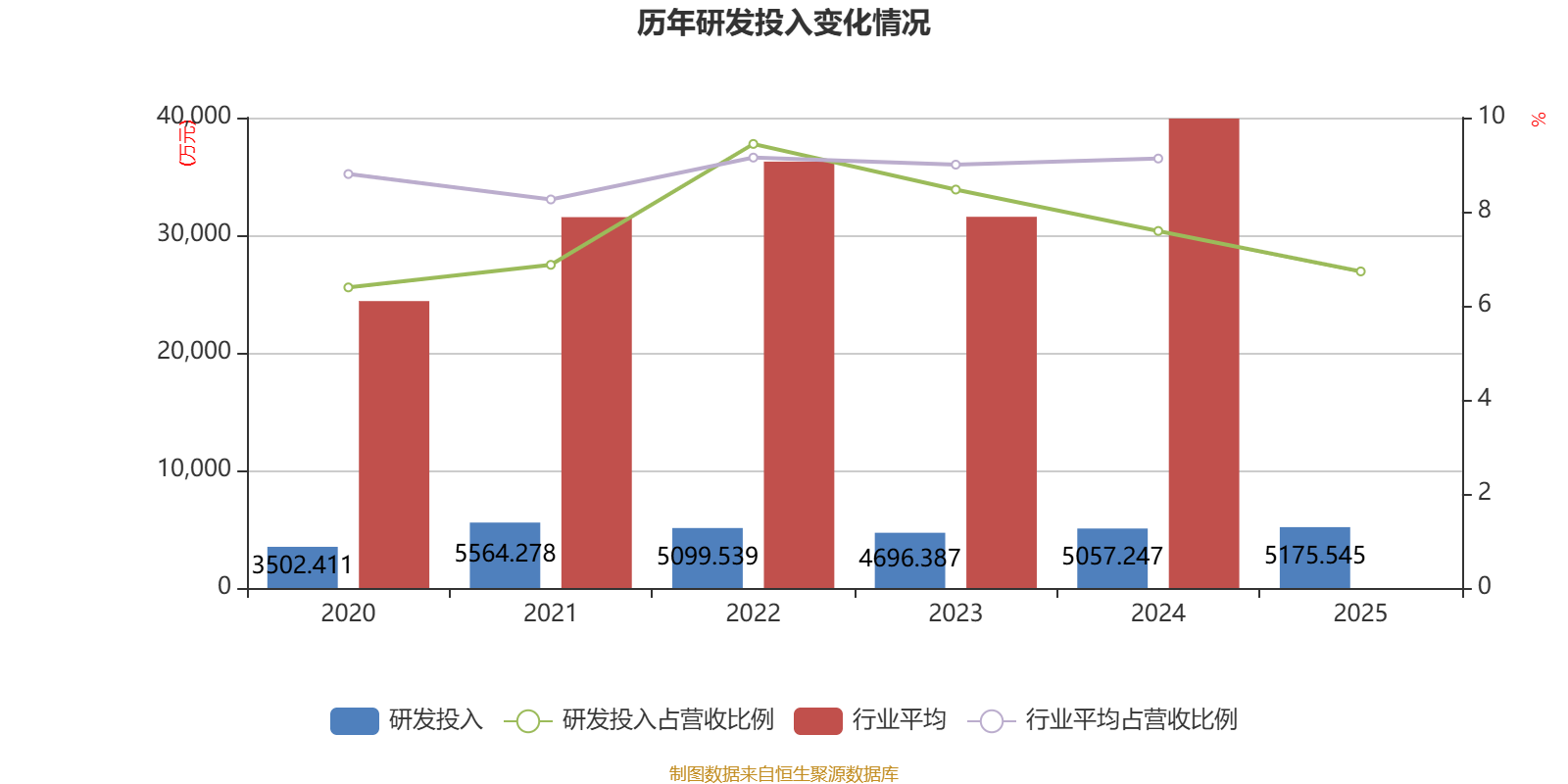2025年全年,公司研发投入金额为5175.55万元,同比增长2.34%;研发投入占营业收入比例为6.73%,相比上年同期下降0.86个百分点。