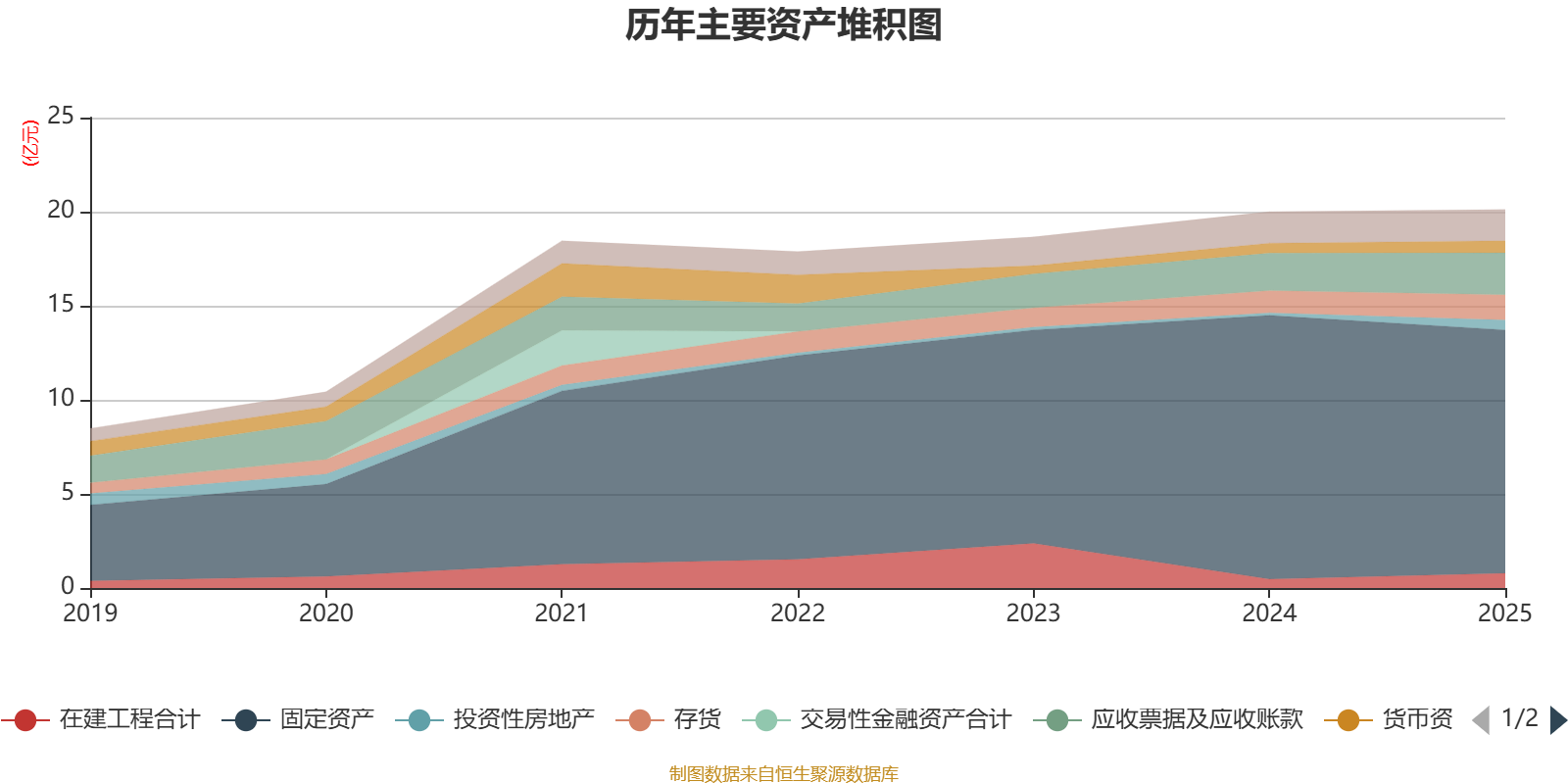 资产重大变化方面,截至2025年末,公司固定资产较上年末减少7.72%,占公司总资产比重下降5.79个百分点;投资性房地产较上年末增加281.91%,占公司总资产比重上升1.95个百分点;在建工程合计较上年末增加64.35%,占公司总资产比重上升1.5个百分点;应收票据及应收账款较上年末增加11.94%,占公司总资产比重上升1.12个百分点。