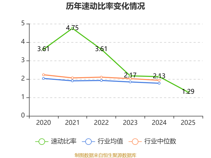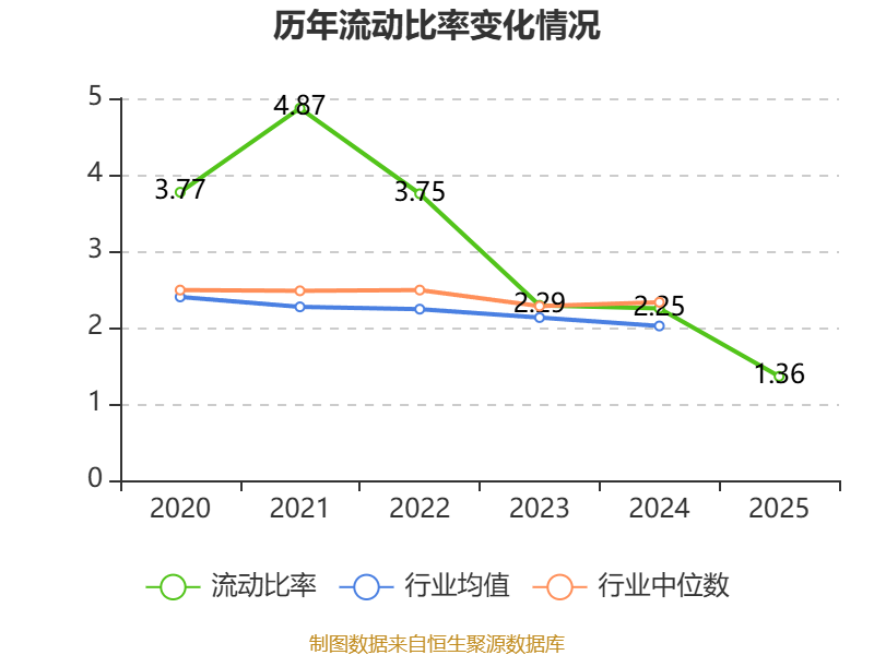 2025年,公司流动比率为1.36,速动比率为1.29。