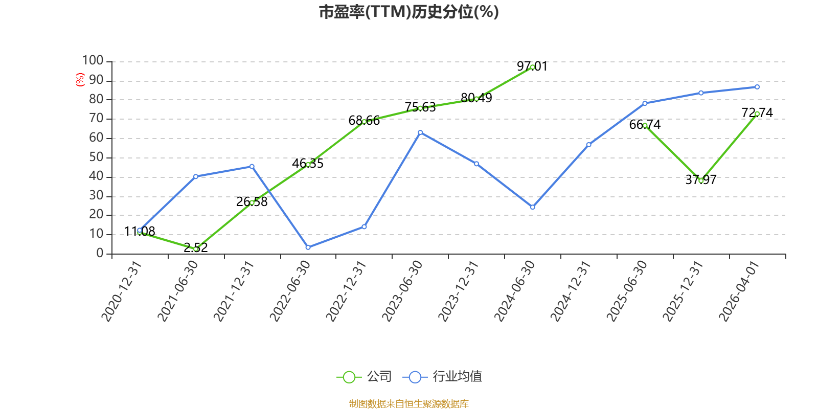 市盈率、市净率为负时,不显示当期分位数,会导致折线图中断。