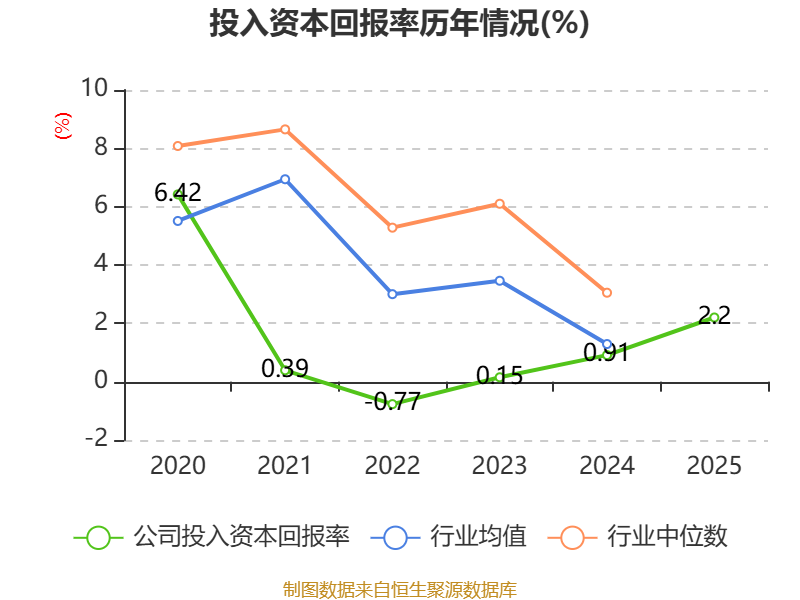 数据显示,2025年公司加权平均净资产收益率为2.18%,较上年同期上升1.47个百分点。公司2025年投入资本回报率为2.2%,较上年同期上升1.29个百分点。