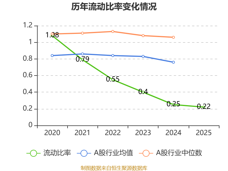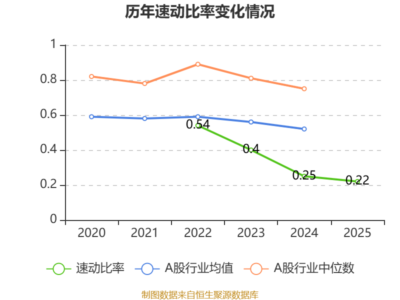 2025年,公司流动比率为0.22,速动比率为0.22。