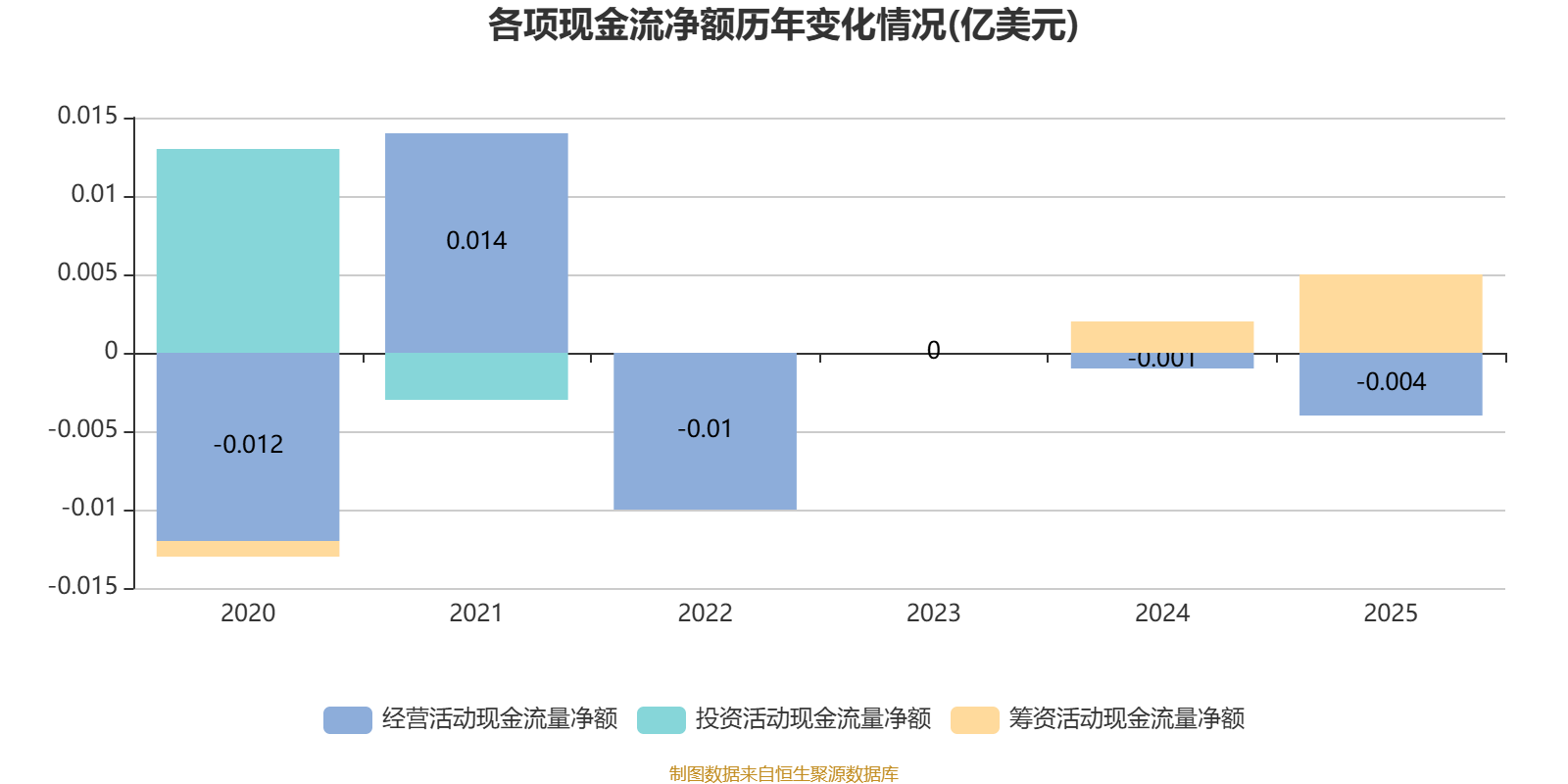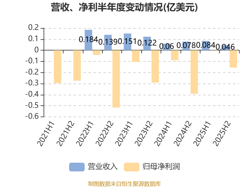 2025年,公司经营活动现金流净额为-35万美元,同比减少27.5万美元;筹资活动现金流净额46.6万美元,同比增加27.3万美元。