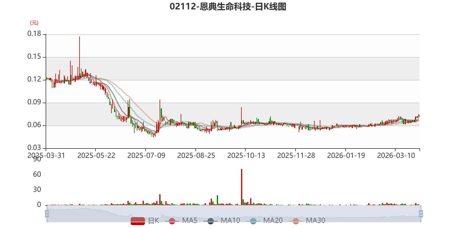 以3月31日收盘价计算,恩典生命科技目前市净率(TTM)约-0.08倍,市销率(TTM)约1.08倍。