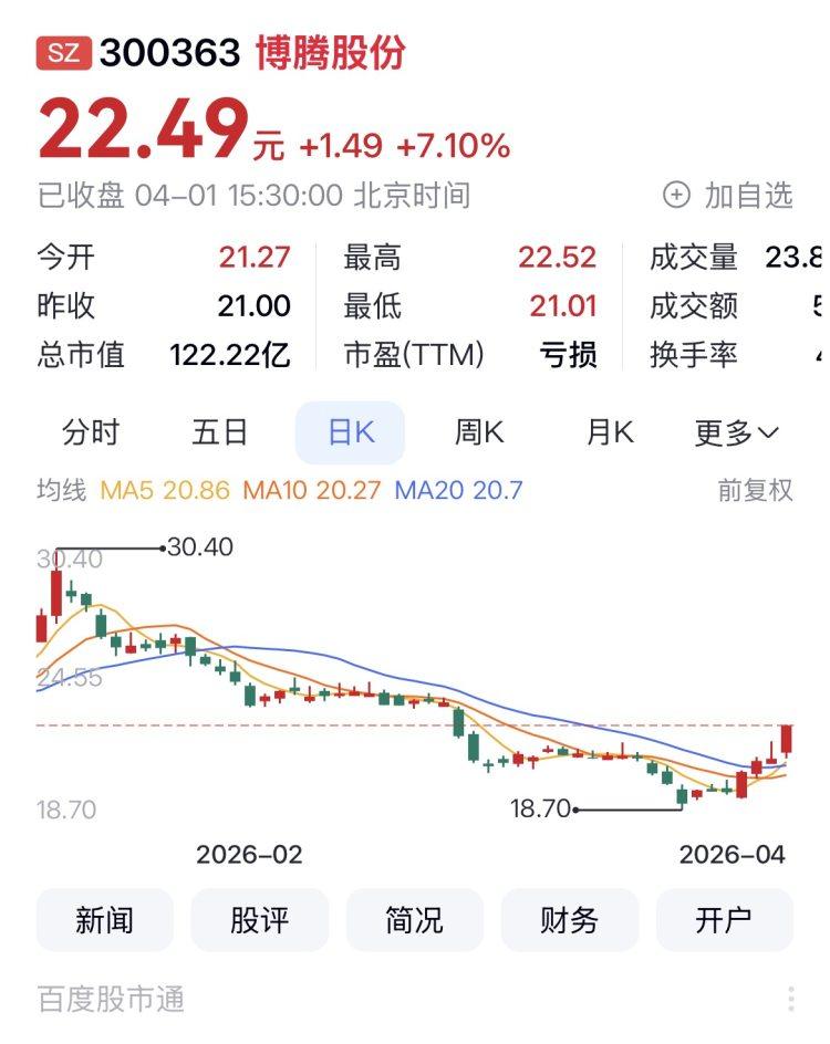 博腾股份涨7.10%列日涨幅第三