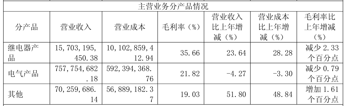 作为宏发股份的“压舱石”,继电器业务在2025年贡献了157.03亿元的收入,占比超过总营收的九成。然而,该产品的毛利率却同比下降2.33个百分点至35.66%。