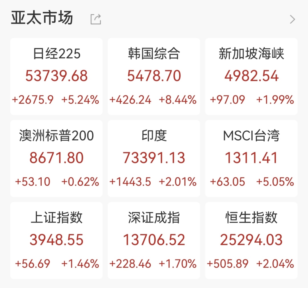 4月1日,亚太股市集体迎来反弹行情,A股、港股同步上演四月“开门红”。受益于隔夜全球市场因美伊释放缓和信号,全球市场情绪回暖,A股和港股顺势迎来高开,六大重要指数全线飘红,涨幅均超1%。
