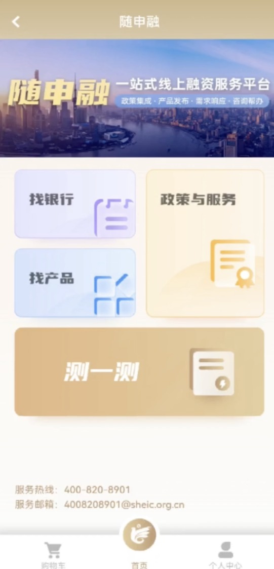 除了测一测,“随申融”还开发有“找银行”“找产品”“政策与服务”等功能。