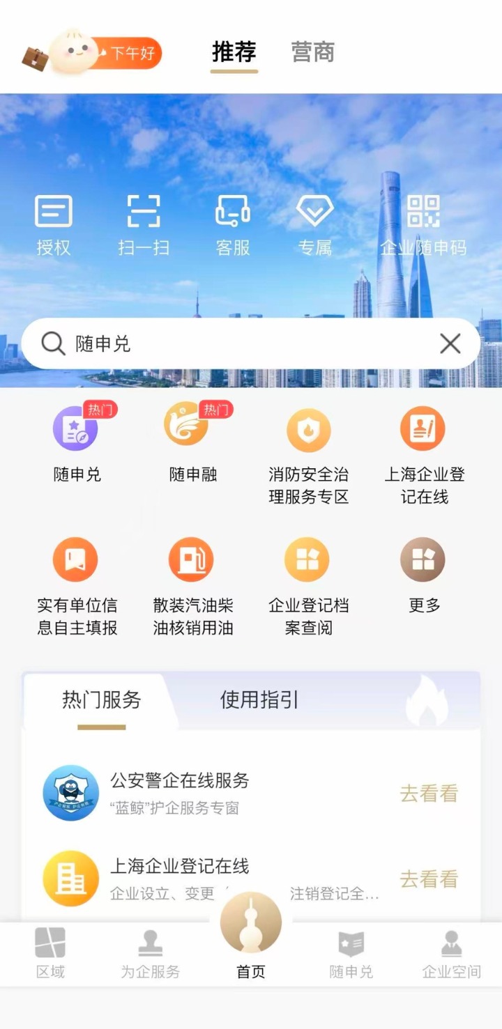 “随申办”企业云APP首页已上线“随申融”