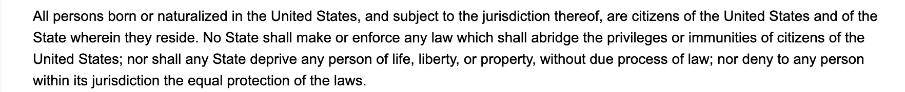 该条款明文规定,任何在美国及受其管辖领土上出生的人自动成为公民,简称为“出生公民权”。而特朗普和他的支持者们认为,这一陈旧的政策导致了所谓的“赴美生育旅游”现象滥用,需要修改。