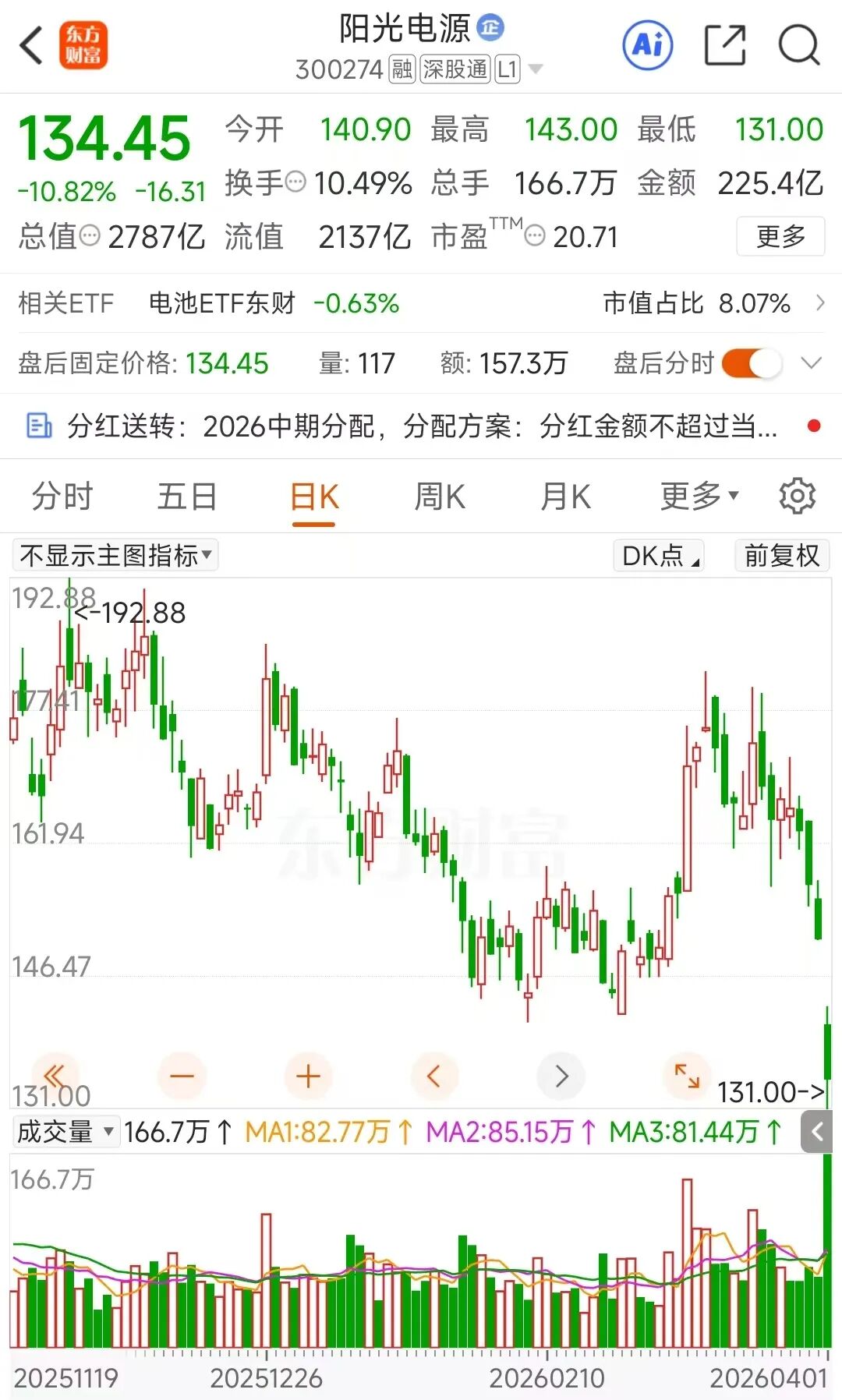 相反,光伏设备龙头阳光电源股价的大跌,成为了市场关注的焦点。4月1日,阳光电源以6.54%大幅低开,至收盘大跌10.82%。