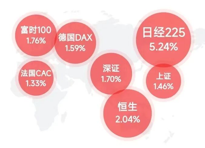 全球股市在4月的第一个交易日集体沸腾,其中A股三大指数大涨超1%,韩国综合指数大涨8.44%,日经225大涨5.24%,台湾加权大涨4.58%,澳大利亚标普200大涨2.24%,恒生指数涨2.04%,法国CAC、德国DAX也在盘初大涨超2%,美股三大股指期货同样出现拉升行情。