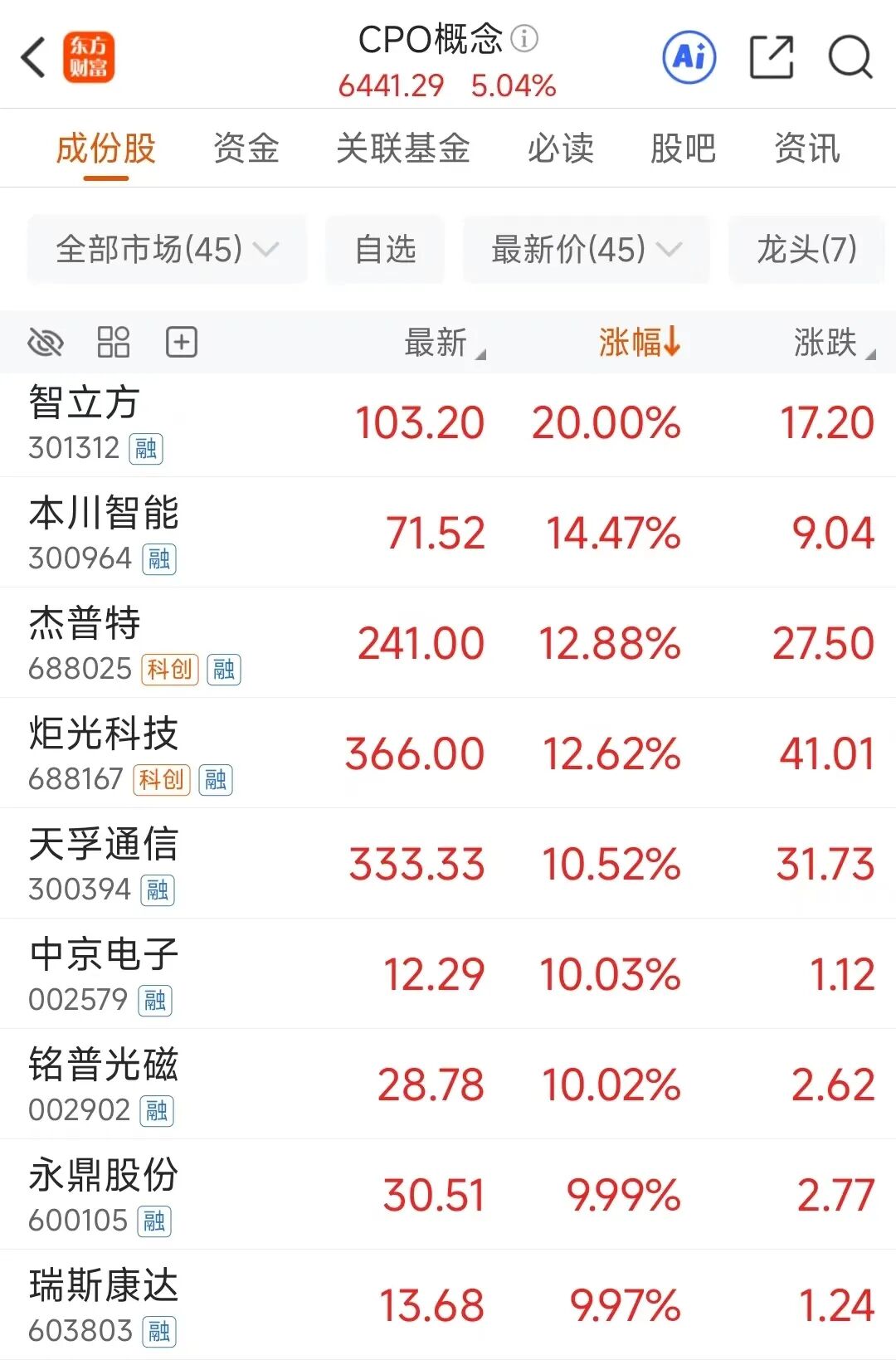 算力硬件股在周二大跌后,周三迎来大幅反弹,CPO、PCB等涨幅靠前。CPO板块中智立方、中京电子、铭普光磁、永鼎股份、瑞斯康达涨停;本川智能、杰普特、炬光科技、天孚通信大涨超10%。