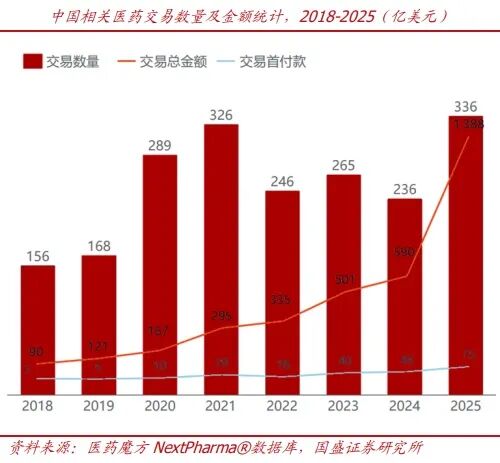 一是我国创新药BD交易持续高景气。国盛证券表示,截至3月27日,2026年以来我国创新药BD交易总额已突破600亿美元。而过去的2025年,我国创新药BD交易总金额提升至1388亿美元(+135%),首付款增至75亿美元(+63%);2025年中国相关交易总金额约占全球交易总金额50%。