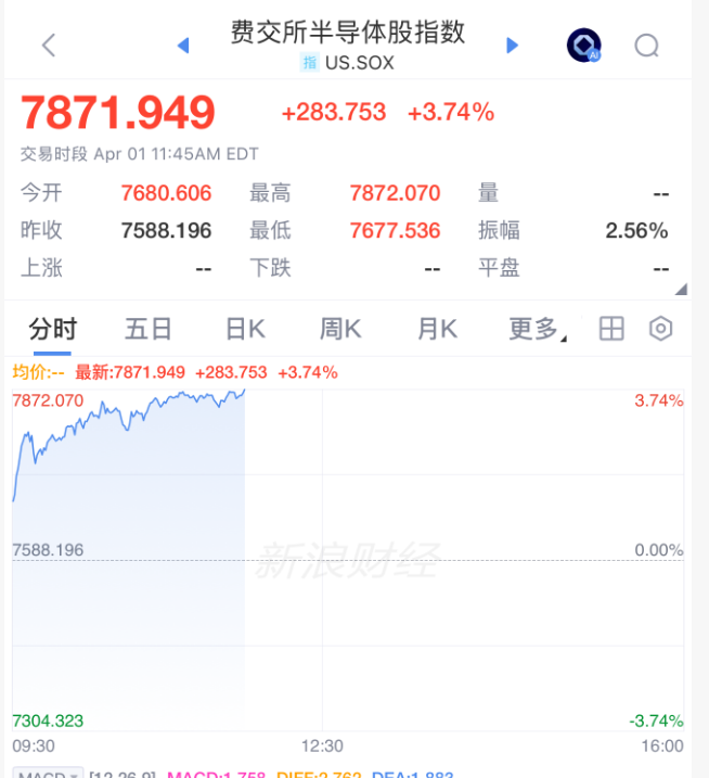 芯片股延续反弹,费城半导体指数暴涨近4%。