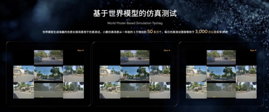 托X-World,小鹏构建了面向第二代VLA的闭环评估引擎。区别于传统的基于3D重建的技术路线,X-World可进行交互式推演,并支持对安全关键指标进行评估。目前,小鹏自动驾驶仿真场景从一年前的3万个增加到50多万个,每日仿真测试里程等效于3000万公里实车测试。