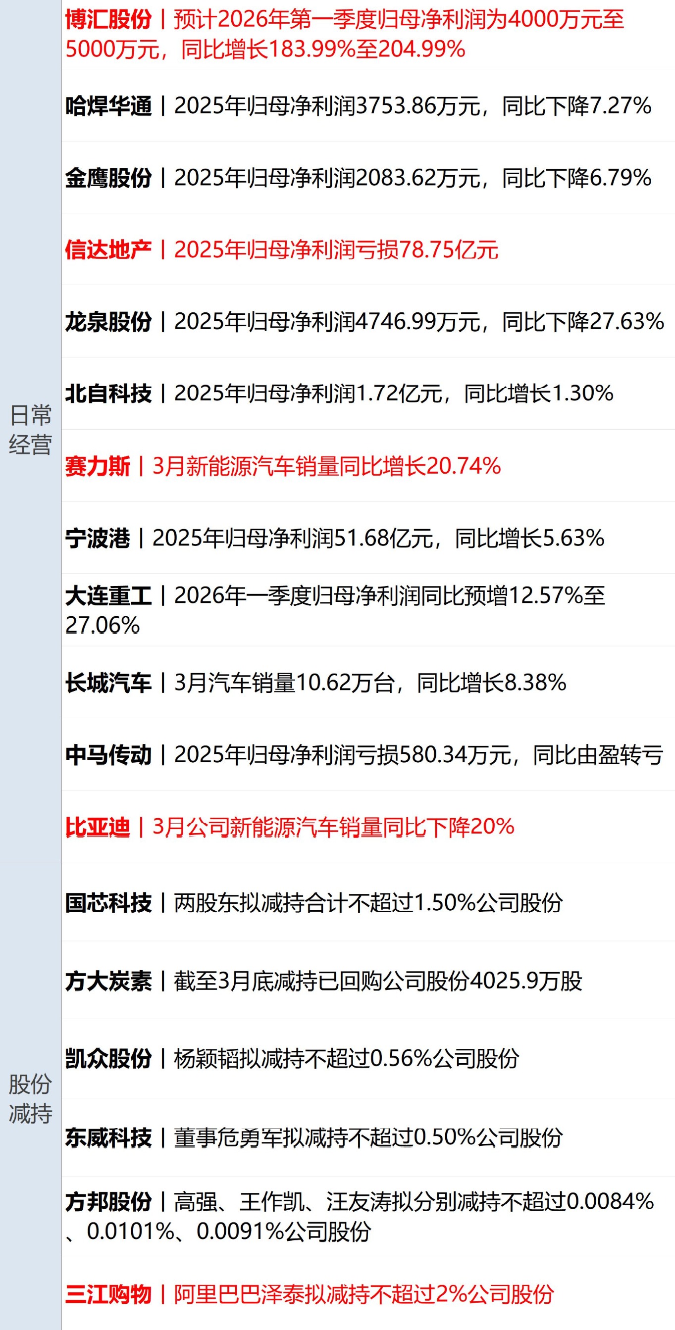 赛力斯(SH601127,股价91.76元,市值1598.45亿元):4月1日,赛力斯公告,2026年3月份新能源汽车销量达22706辆,同比增长20.74%。其中赛力斯汽车销量达20234辆,同比增长47.74%。