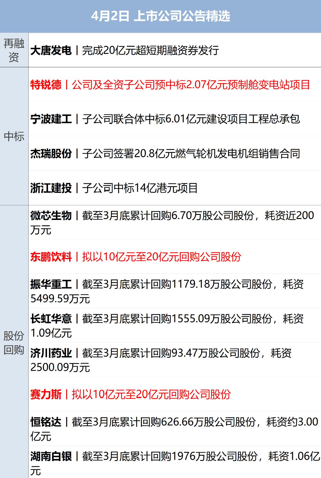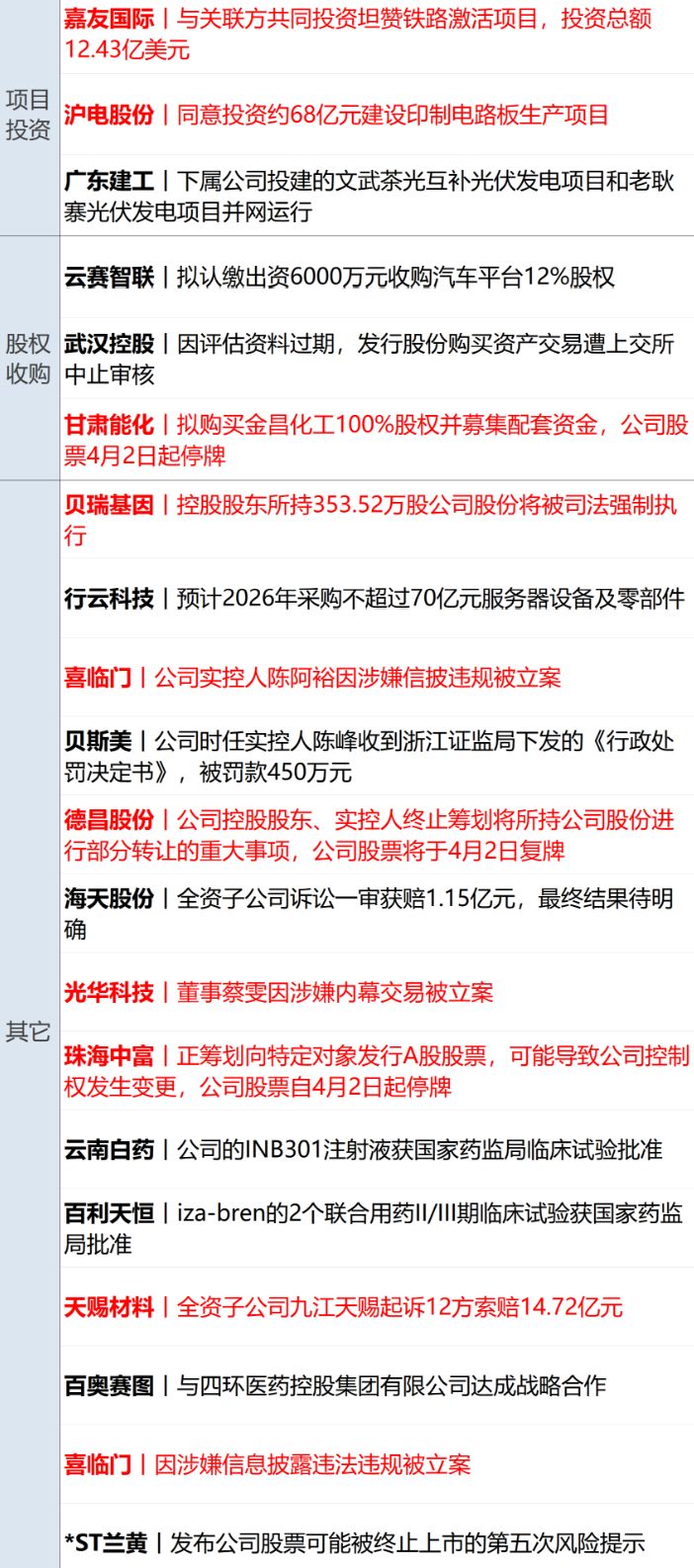 宁德时代(SZ300750,股价405.71元,市值1.85万亿元):3月31日,宁德时代发布公告称,公司接到控股股东厦门瑞庭投资有限公司通知,其与上海交通大学教育发展基金会签订了《上海交通大学“曾毓群教育基金”捐赠协议书》,厦门瑞庭拟向基金会无偿捐赠其持有的宁德时代500万股A股无限售流通股。按收盘价计,这笔捐赠对应市值超过20亿元,再次刷新上海交大的捐赠纪录。厦门瑞庭的实际控制人为曾毓群。