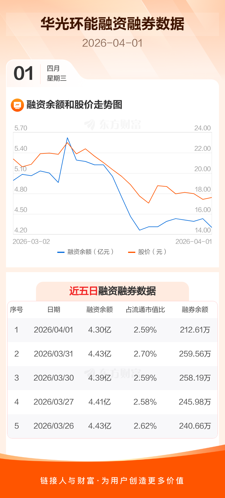 交易所最新数据显示,华光环能于2026年4月1日获融资买入1287.47万元,融资偿还2579.22万元,当日融资净偿还1291.75万元。目前,该股融资余额4.30亿,占流通市值比例为2.59%。