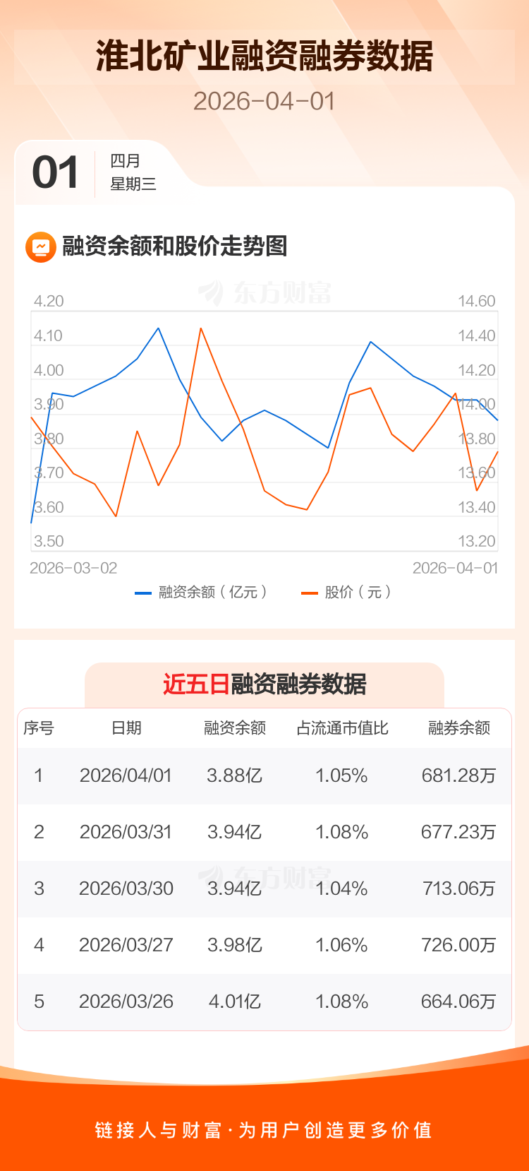 交易所最新数据显示,淮北矿业于2026年4月1日获融资买入1540.12万元,融资偿还2155.00万元,当日融资净偿还614.89万元。目前,该股融资余额3.88亿,占流通市值比例为1.05%。