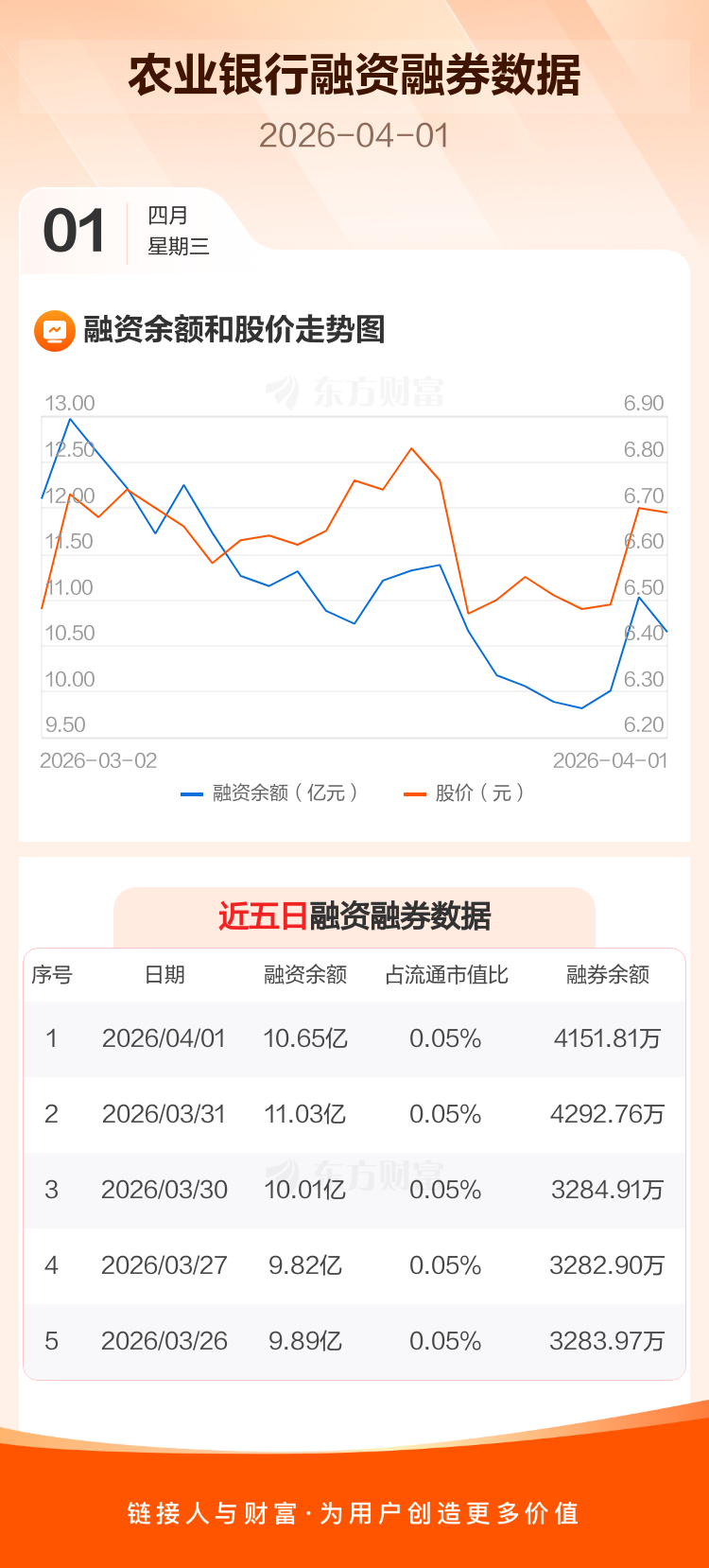 农业银行:融资净偿还3829.88万元,融资余额10.65亿元