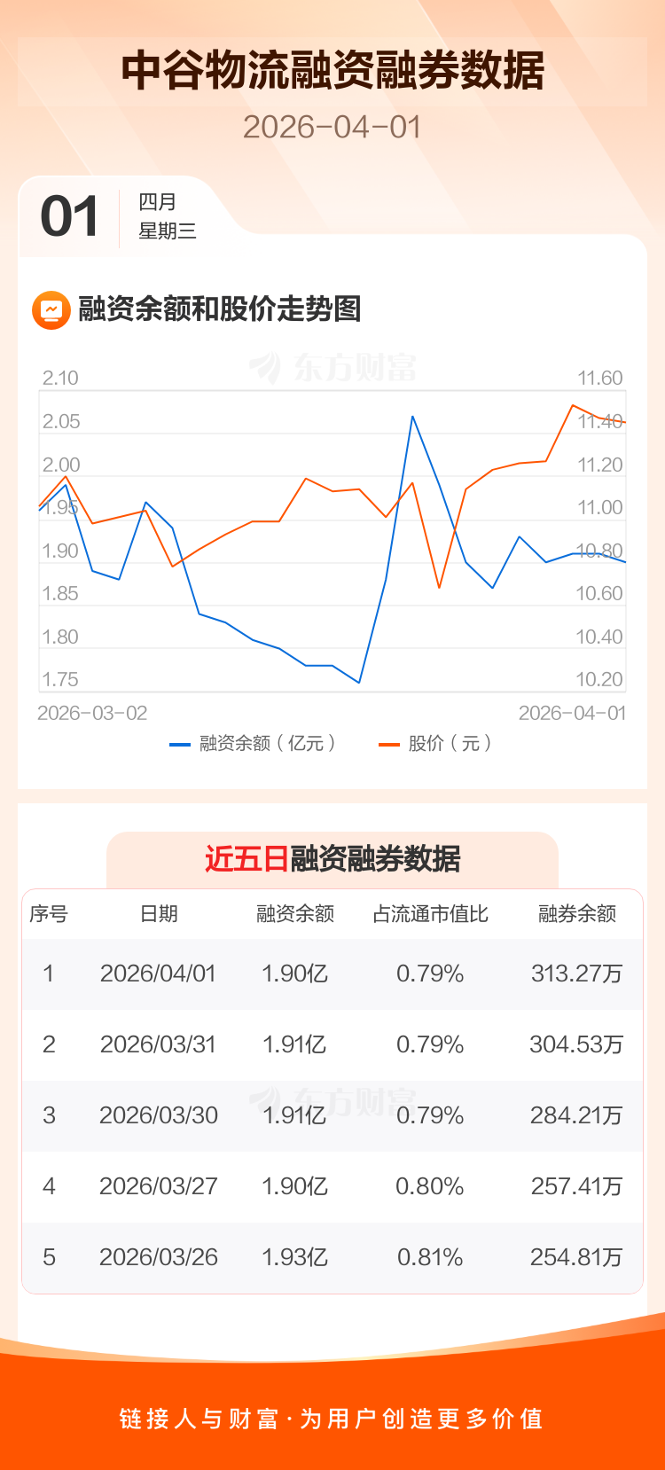 交易所最新数据显示,中谷物流于2026年4月1日获融资买入1217.99万元,融资偿还1265.11万元,当日融资净偿还47.12万元。目前,该股融资余额1.90亿,占流通市值比例为0.79%。
