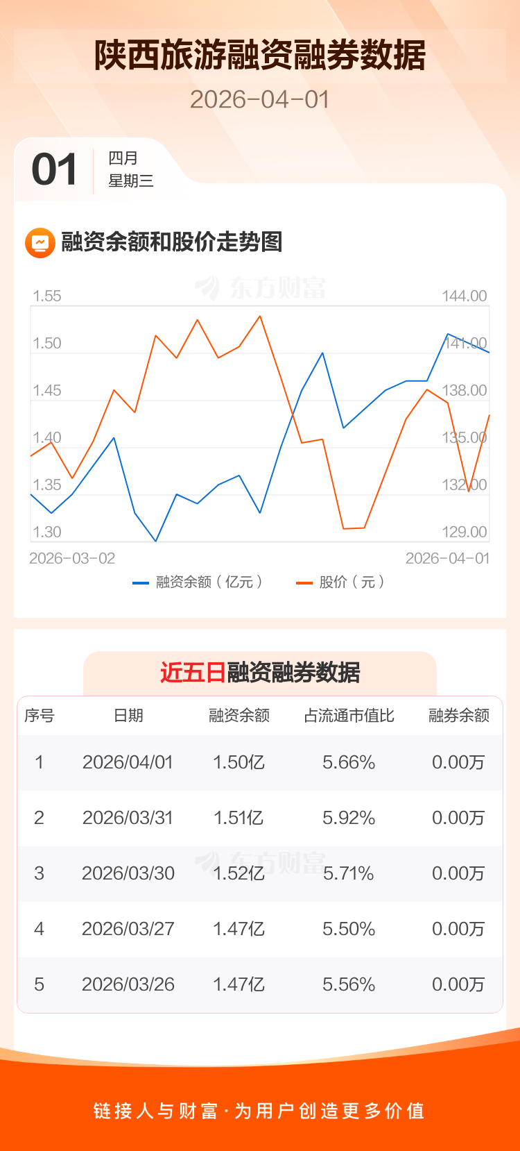交易所最新数据显示,陕西旅游于2026年4月1日获融资买入2234.91万元,融资偿还2354.01万元,当日融资净偿还119.1万元。目前,该股融资余额1.50亿,占流通市值比例为5.66%。