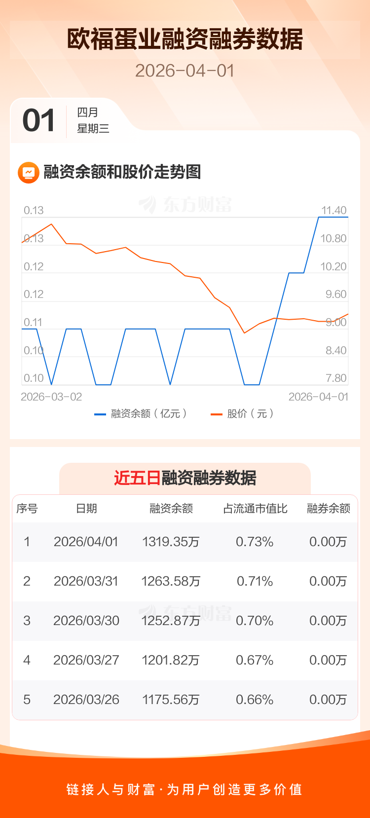 欧福蛋业:融资净买入55.77万元,融资余额1319.35万元