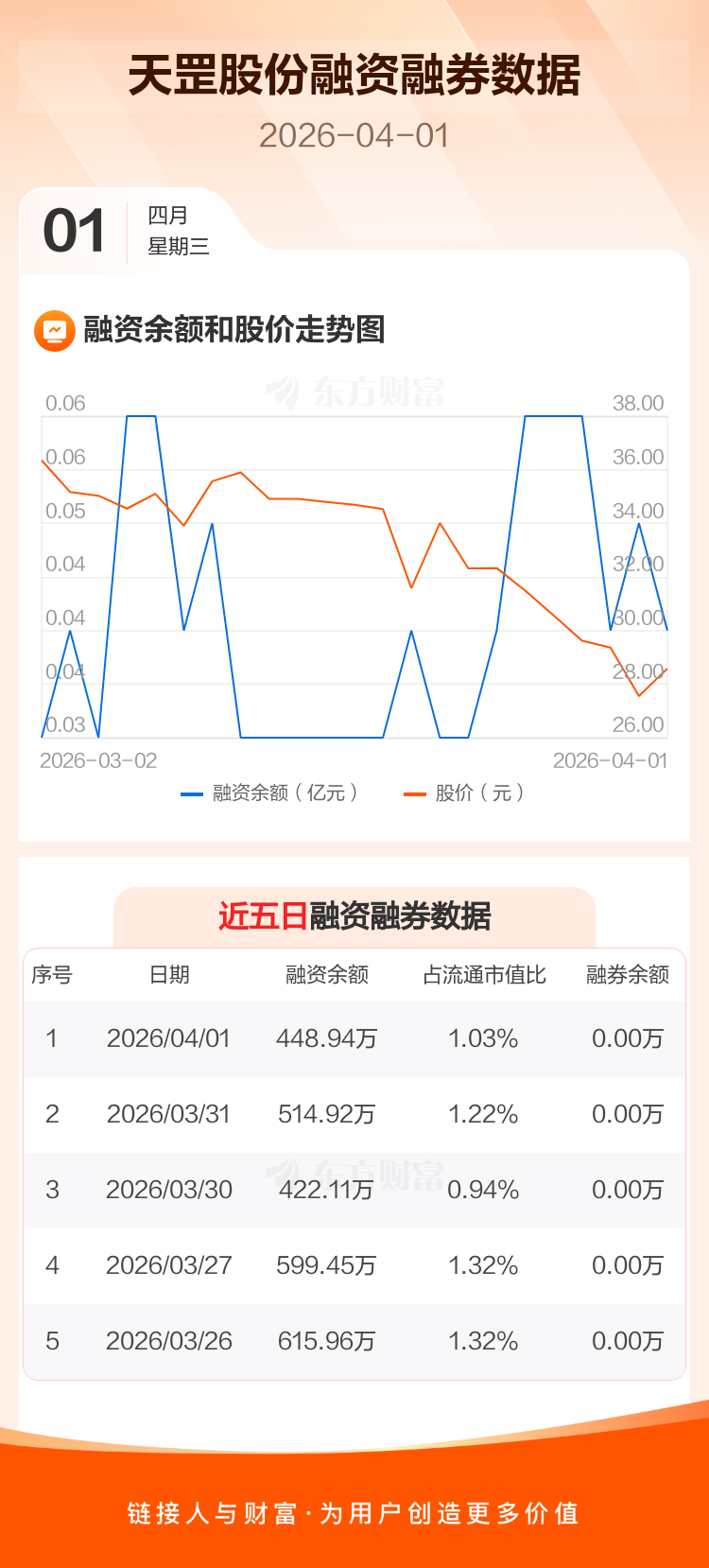 交易所最新数据显示,天罡股份于2026年4月1日获融资买入29.02万元,融资偿还95.00万元,当日融资净偿还65.98万元。目前,该股融资余额448.94万,占流通市值比例为1.03%。